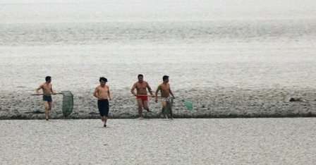 杭州市民钱塘江抢潮头鱼 1人被潮水卷倒