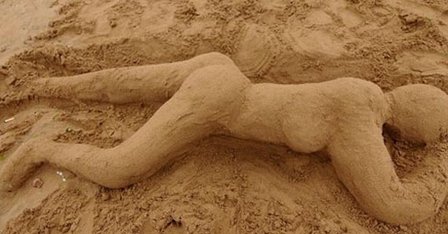 青岛游客海边制作创意“沙雕女人像”引围观