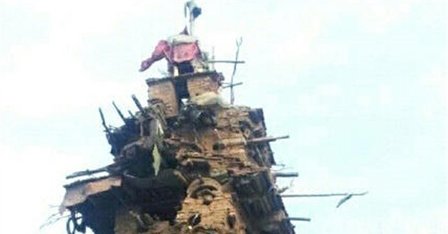 智障农民捡泥土石块建起七层小楼
