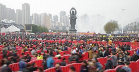 大年初五拜财神 武汉市民挤爆归元寺