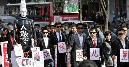 太原闹市现行为艺术“人贩子游街”