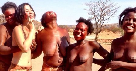 入乡随俗:美女摄影师裸体与非洲部族拍照合影