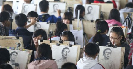 江苏近万美术考生模拟艺考 场面壮观