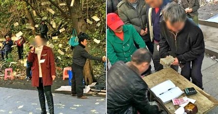 卖唱女街边卖艺 老人大把撒钱“打赏”